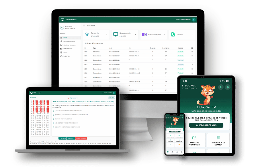 Simulador SIECOPOL es la app más completa para prepararte y aprobar tu examen. Con una interfaz simple, práctica y minimalista, te ofrece todo lo que necesitas para estudiar en cualquier momento y lugar.